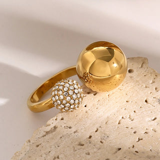 ステンレス304 ニッケルフリー 水に濡れても錆びにくい 18Kゴールドメッキ リング ボール ジルコニア【YJ00971】