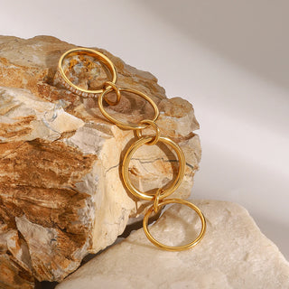 ステンレス304 ニッケルフリー 水に濡れても錆びにくい 18Kゴールドメッキ 4連 重ね付け リング ジルコニア【YJ00985】