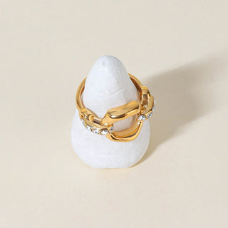 ステンレス304 ニッケルフリー 水に濡れても錆びにくい 18Kゴールドメッキ 2連 重ね付け リング ジルコニア【YJ00997】