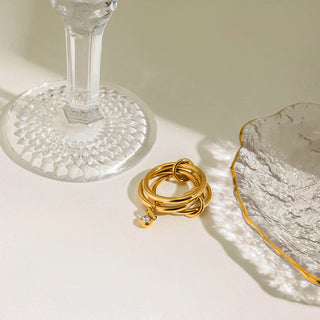 ステンレス304 ニッケルフリー 水に濡れても錆びにくい 18Kゴールドメッキ 3連 重ね付け リング ジルコニア【YJ00946】
