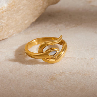 ステンレス304 低ニッケル 水に濡れても錆びにくい 18Kゴールドメッキ リング 2層 蛇 ヘビ スネーク 【YJ01160】