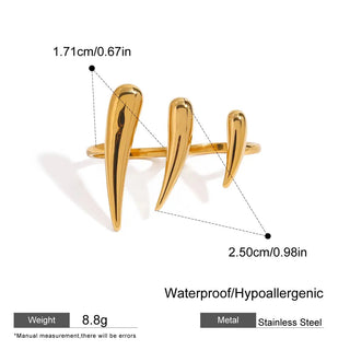 ステンレス304 低ニッケル 水に濡れても錆びにくい 18Kゴールドメッキ リング タッセル ジルコニア 【YJ01059】