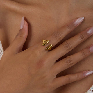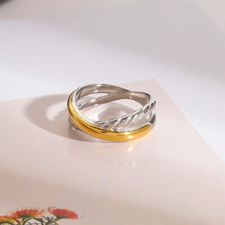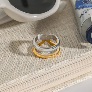 ステンレス304 ニッケルフリー 水に濡れても錆びにくい 18Kゴールドメッキ リング 2連 【YJ00555】
