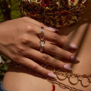 ステンレス304 ニッケルフリー 水に濡れても錆びにくい 18Kゴールドメッキ チェーン リング ジルコニア 【YJ00934】