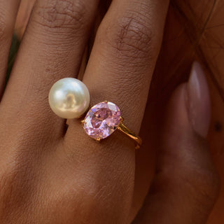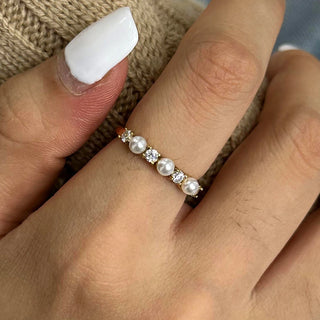 ステンレス304 ニッケルフリー 水に濡れても錆びにくい 18Kゴールドメッキ リング ジルコニア パール 【YJ00927】