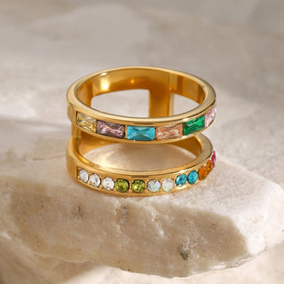ステンレス304 ニッケルフリー 水に濡れても錆びにくい 18Kゴールドメッキ チャンキー リング ジルコニア 【YJ00791】