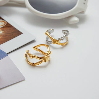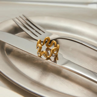 ステンレス304 ニッケルフリー 水に濡れても錆びにくい 18Kゴールドメッキ リング ウェーブ 【YJ00779】