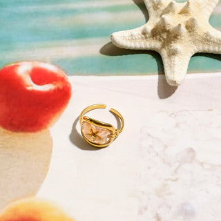 ステンレス304 ニッケルフリー 水に濡れても錆びにくい 18Kゴールドメッキ リング ヒトデ シェル 貝殻 スクエア 【YJ00918】