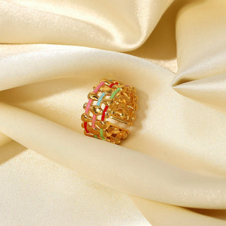 ステンレス304 ニッケルフリー 水に濡れても錆びにくい 18Kゴールドメッキ リング エナメル【YJ00661】