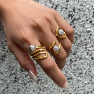ステンレス304 ニッケルフリー 水に濡れても錆びにくい 18Kゴールドメッキ リング リボン パール 【YJ00891】