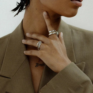 ステンレス304 ニッケルフリー 水に濡れても錆びにくい リング 4連 重ね付け ジルコニア 【YJ00743】