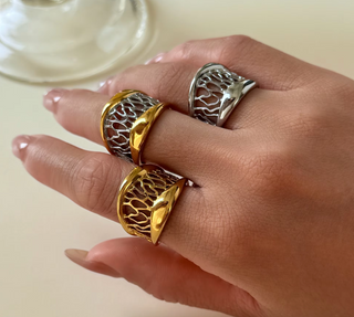 ステンレス304 ニッケルフリー 水に濡れても錆びにくい 18Kゴールドメッキ チャンキー リング 【YJ00843】