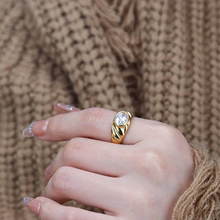 316Lサージカルステンレス リング チャンキー シグネット ジルコニア【NY01485】