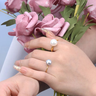 316Lサージカルステンレス 18Kゴールドメッキ リング パール【NY01533】