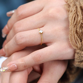 316Lサージカルステンレス 18Kゴールドメッキ リング ツイスト ジルコニア 【NY01495】