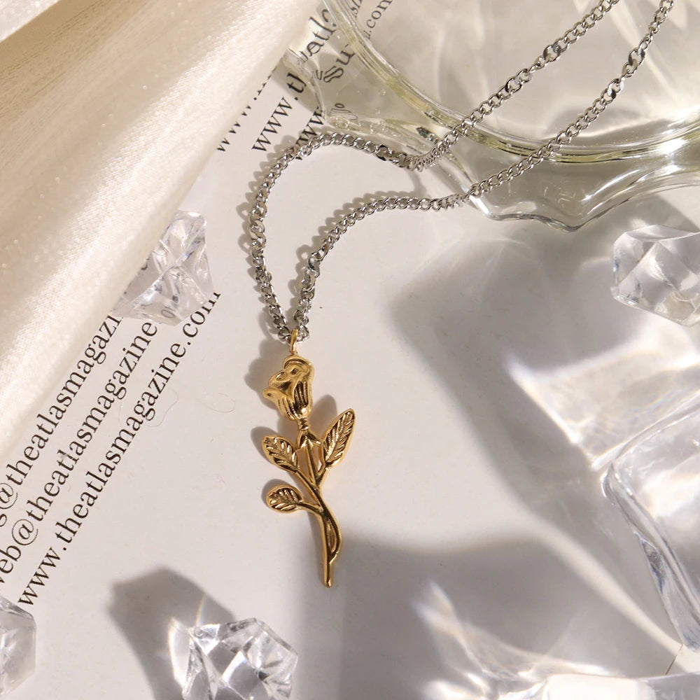 316Lサージカルステンレス 18Kゴールドメッキ ネックレス 薔薇 ローズ 【NY01122】