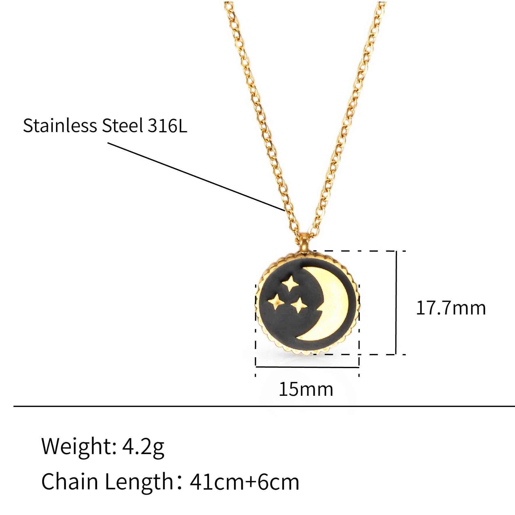 316Lサージカルステンレス ネックレス 月 ラウンド【NY00699】