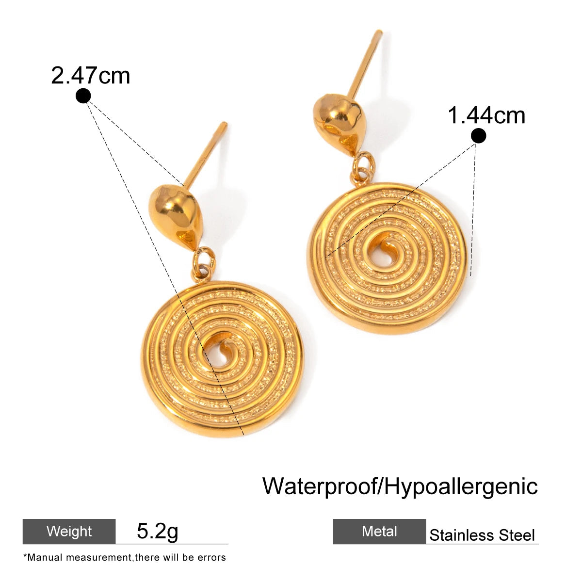 ステンレス304 低ニッケル 水に濡れても錆びにくい 18Kゴールドメッキ ピアス スパイラル ラウンド【YJ02123】
