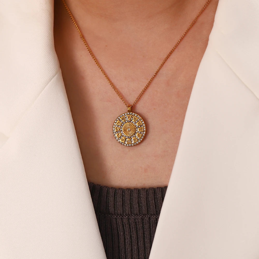 ステンレス304 低ニッケル 水に濡れても錆びにくい 18Kゴールドメッキ ネックレス ラウンド エナメル 【YJ02239】