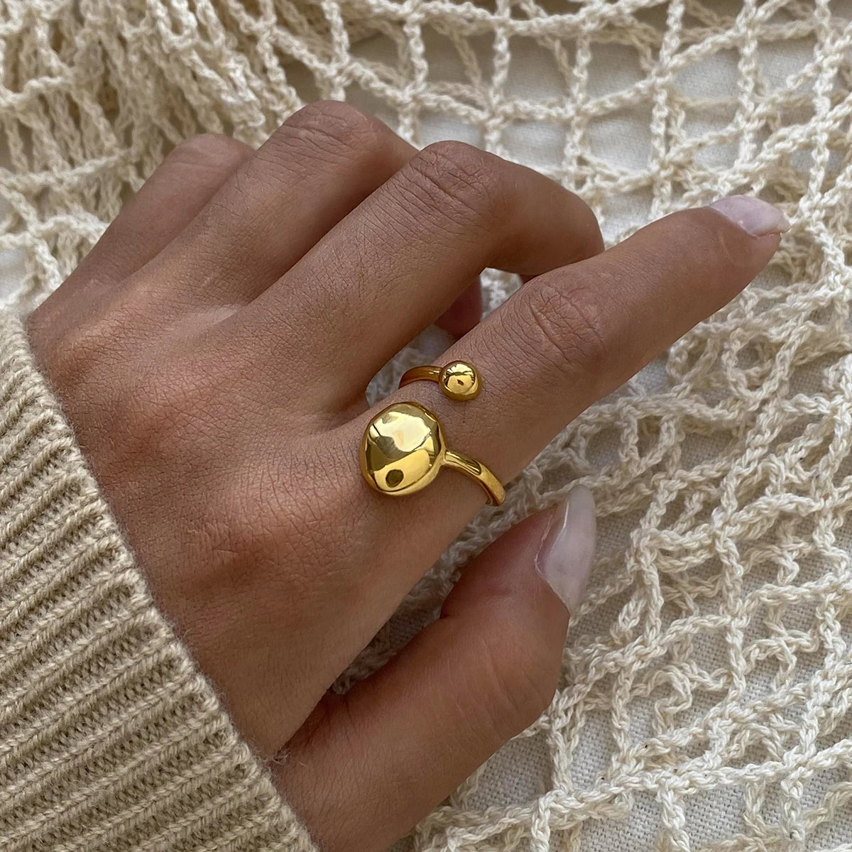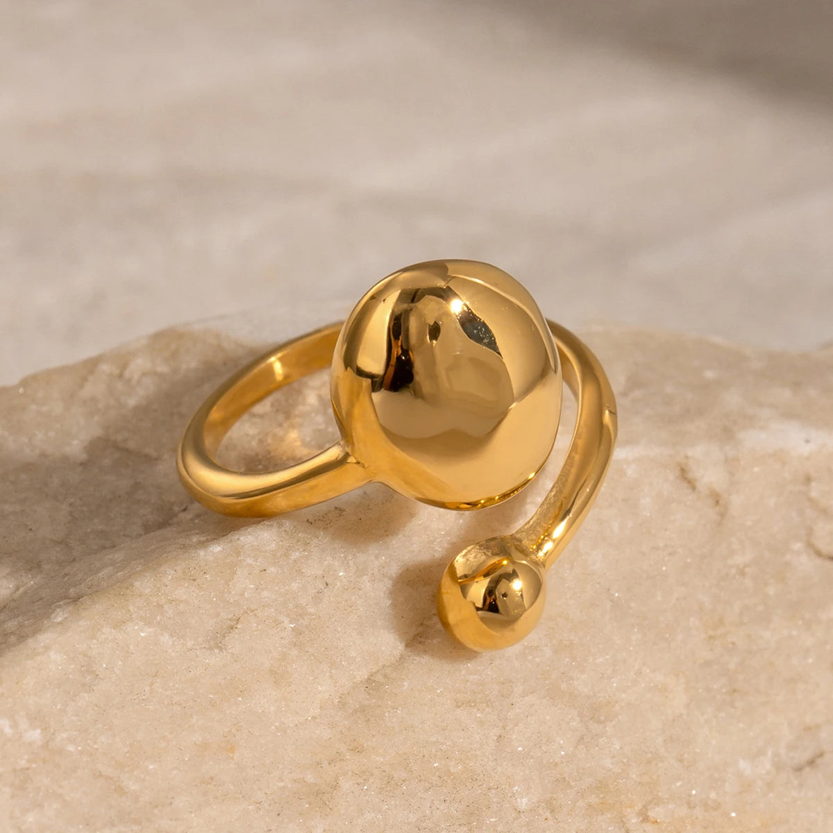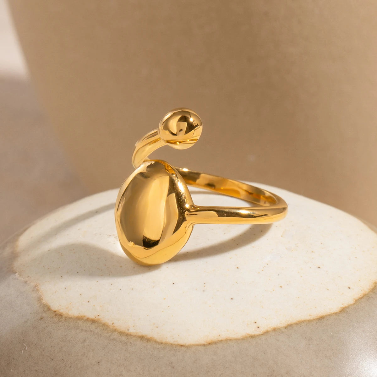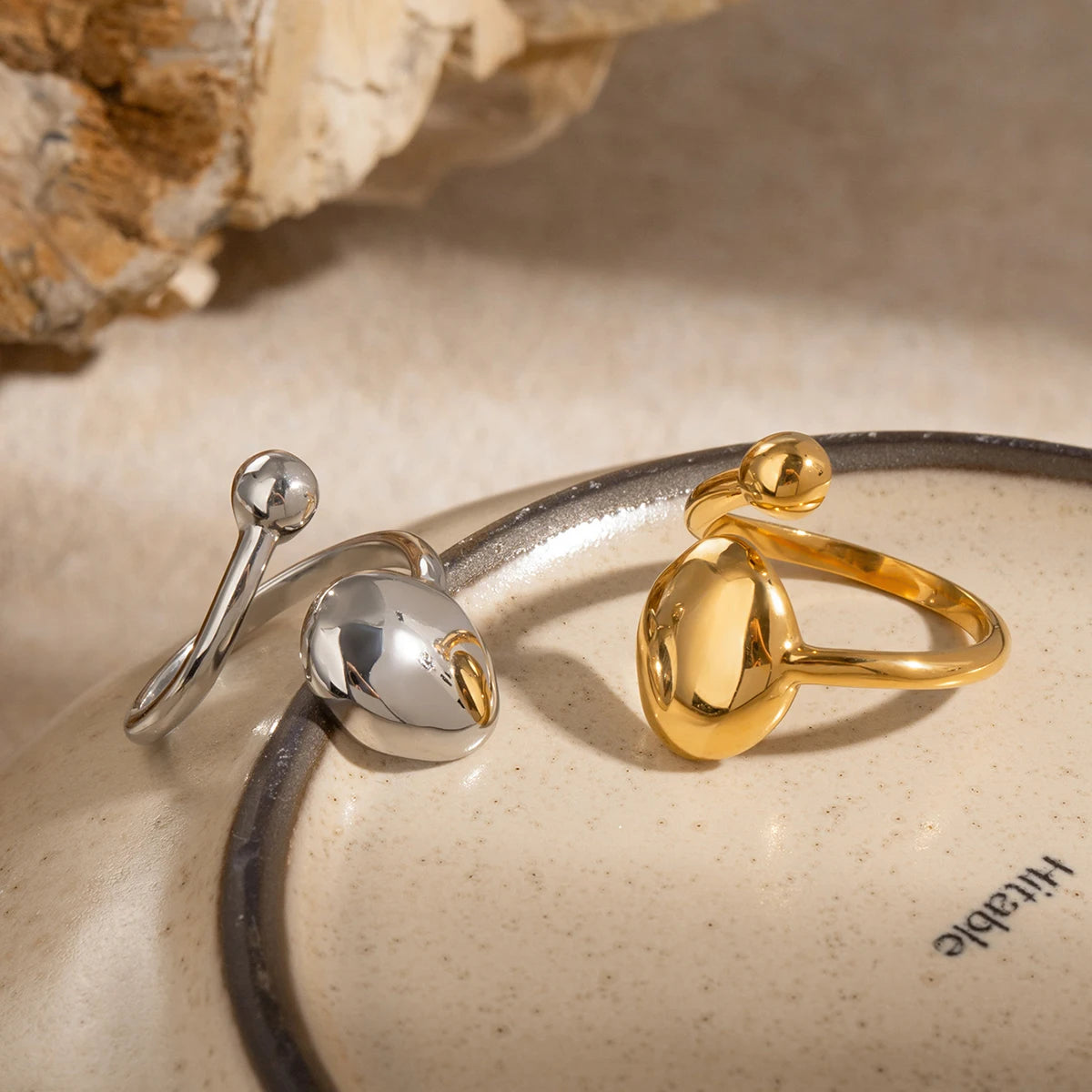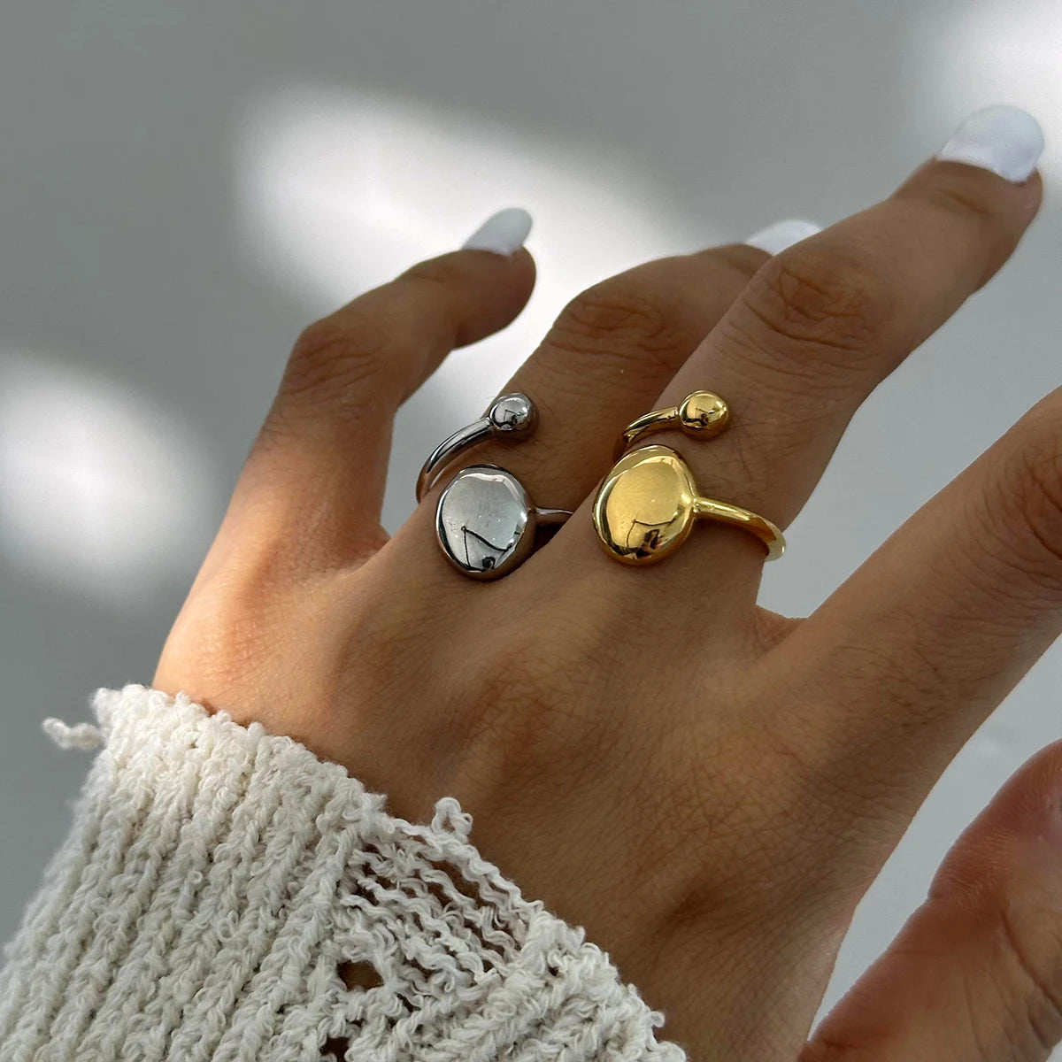 ステンレス304 低ニッケル 水に濡れても錆びにくい 18Kゴールドメッキ リング ラウンド【YJ03323】