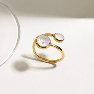 ステンレス304 ニッケルフリー 水に濡れても錆びにくい 18Kゴールドメッキ リング ラウンド クリスタル 【YJ00409】