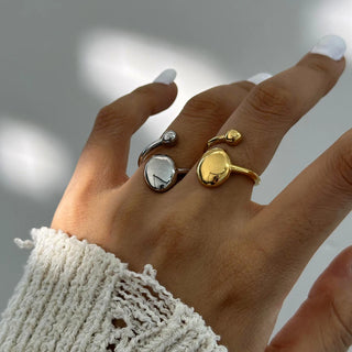 ステンレス304 低ニッケル 水に濡れても錆びにくい 18Kゴールドメッキ リング ラウンド チャンキー【YJ03967】
