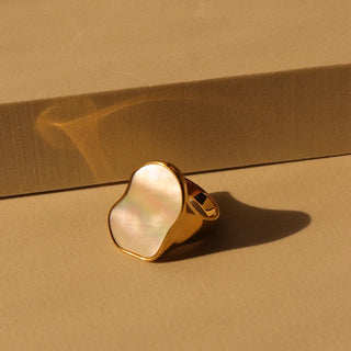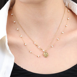 316Lサージカルステンレス 18Kゴールドメッキ リング チェーン シェル パール【NY01876】