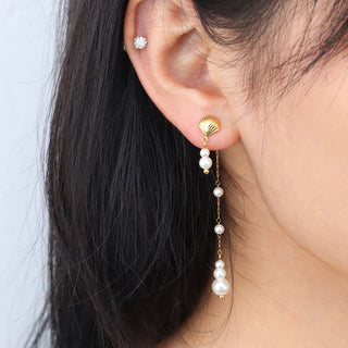 316Lサージカルステンレス ピアス タッセル シェル 貝殻 パール【NY00968】