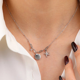 316Lサージカルステンレス ネックレス ヒトデ シェル 貝殻 【NY01242】