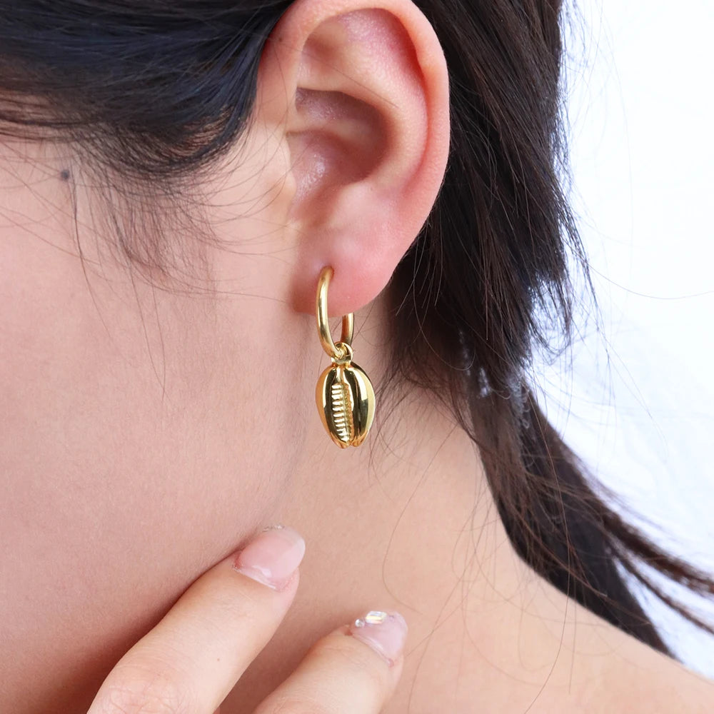 316Lサージカルステンレス ピアス フープ シェル 貝殻 【NY00678】