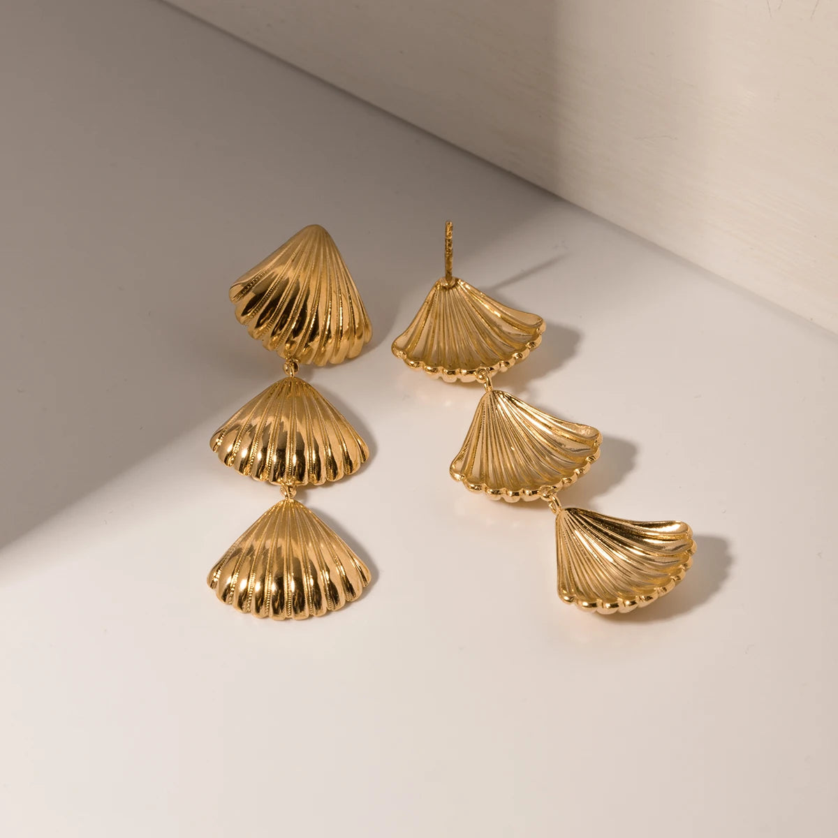 ステンレス304 低ニッケル 水に濡れても錆びにくい 18Kゴールドメッキ ピアス シェル 貝殻 【YJ01791】