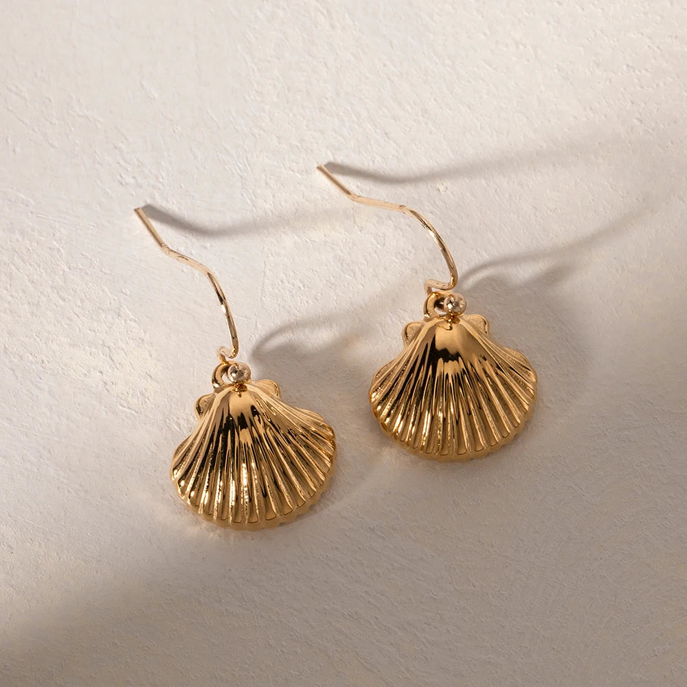 ステンレス304 低ニッケル 水に濡れても錆びにくい 18Kゴールドメッキ ピアス シェル 貝殻 【YJ01826】