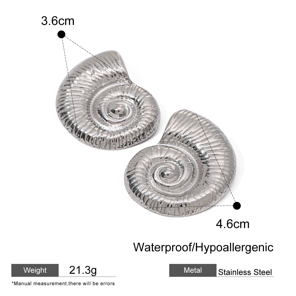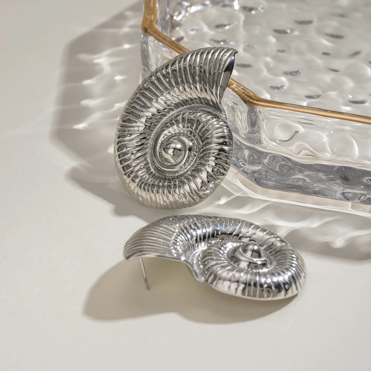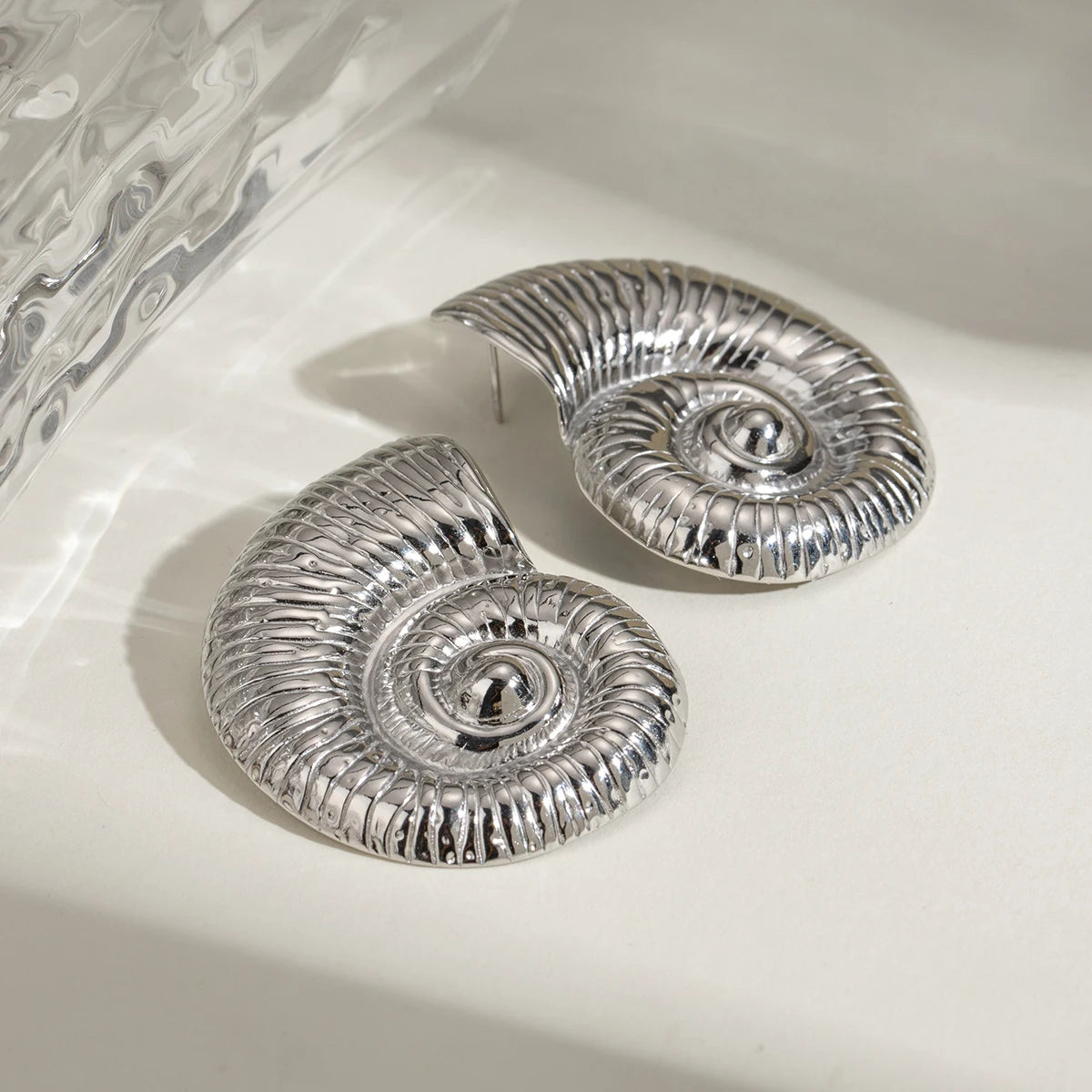 ステンレス304 低ニッケル 水に濡れても錆びにくい ピアス シェル 貝殻 アンモナイト【YJ02088】