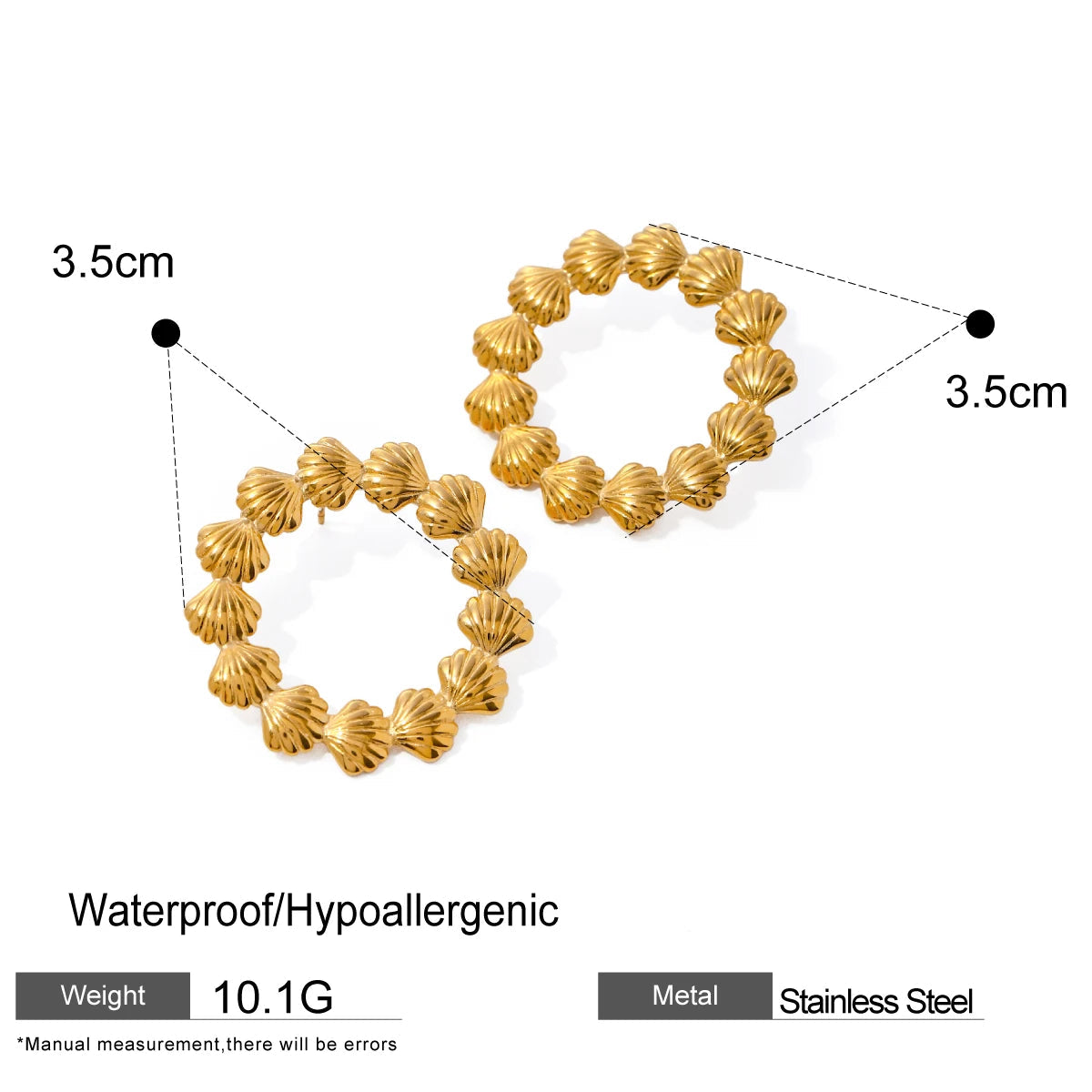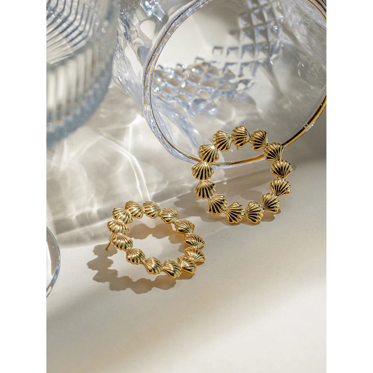 ステンレス304 低ニッケル 水に濡れても錆びにくい 18Kゴールドメッキ ピアス フープ シェル 貝殻 【YJ02226】