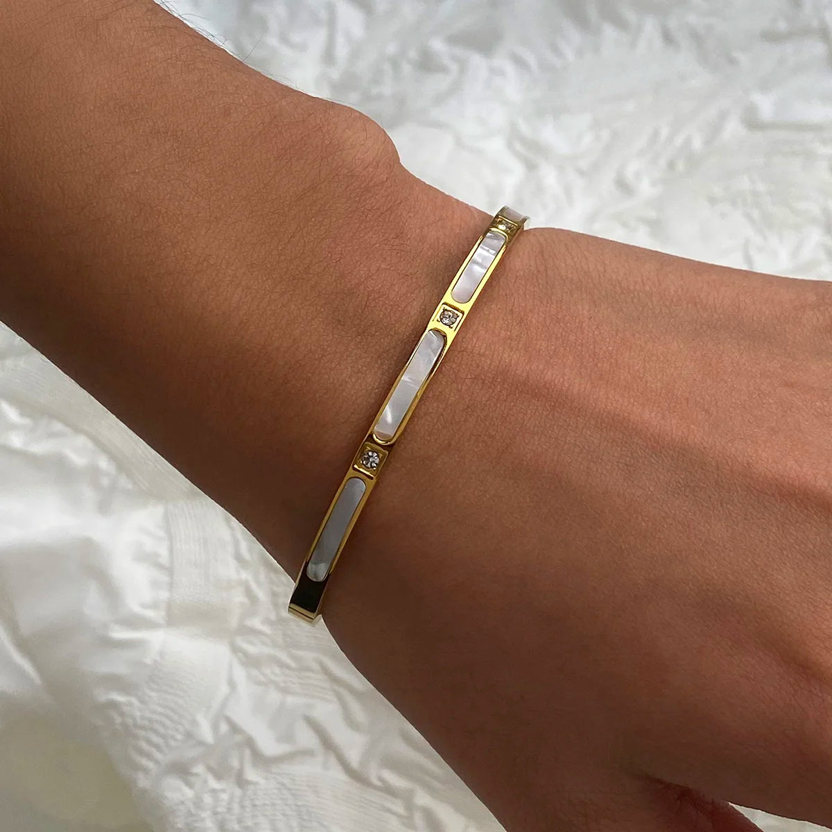 ステンレス304 低ニッケル 水に濡れても錆びにくい 18Kゴールドメッキ ブレスレット シェル 【YJ02564】