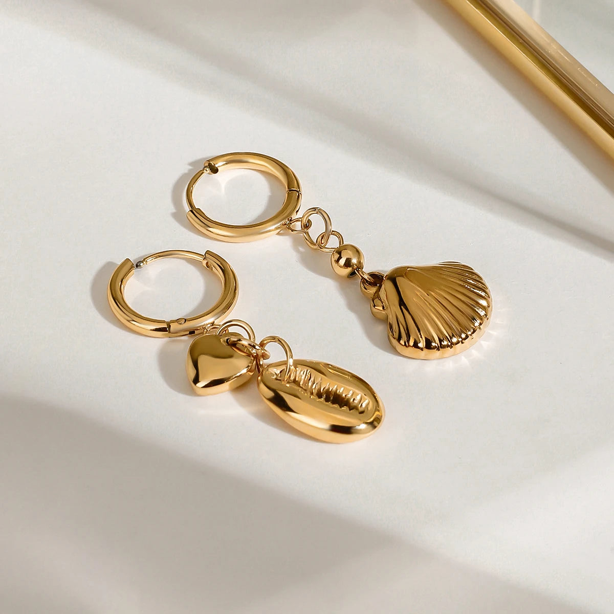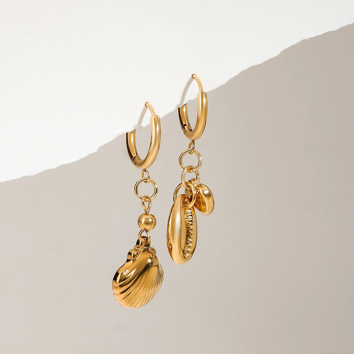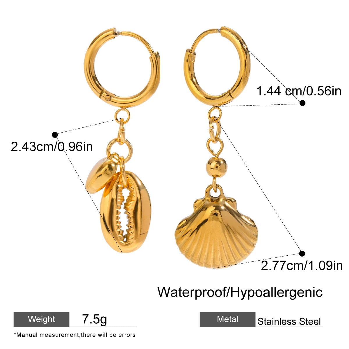 ステンレス304 低ニッケル 水に濡れても錆びにくい 18Kゴールドメッキ ピアス シェル 貝殻 【YJ02641】