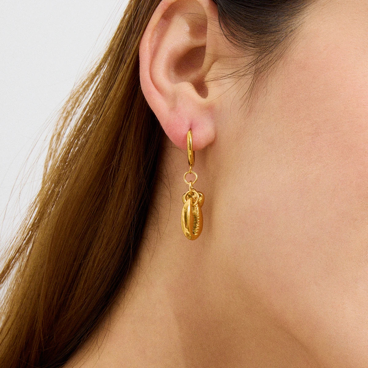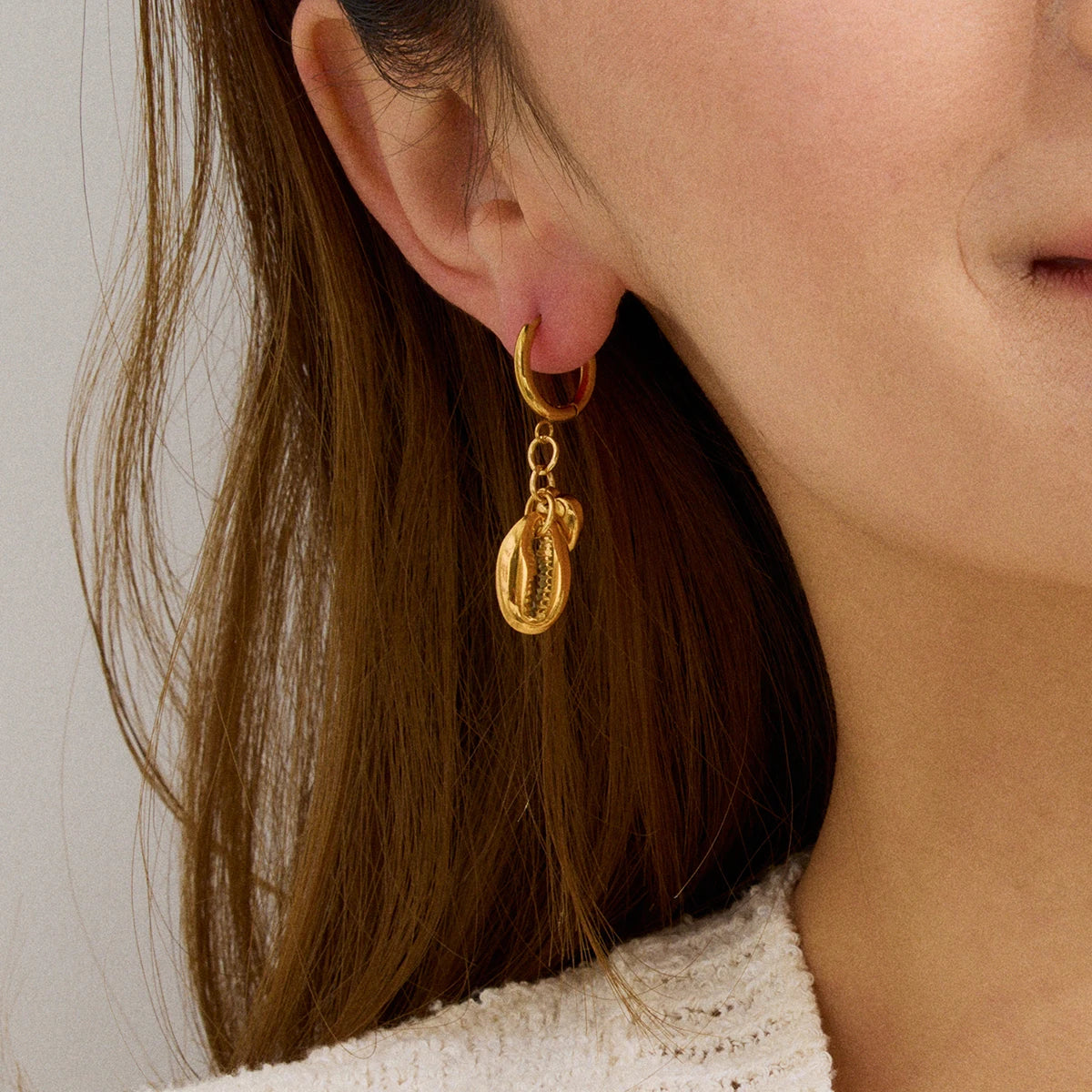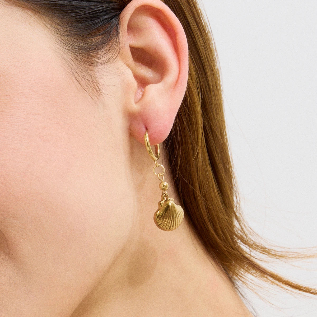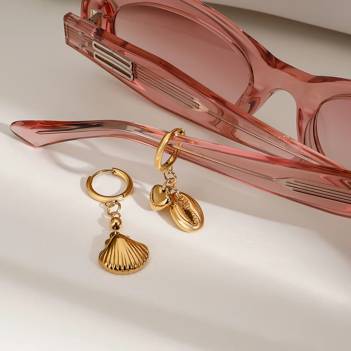 ステンレス304 低ニッケル 水に濡れても錆びにくい 18Kゴールドメッキ ピアス シェル 貝殻 【YJ02641】