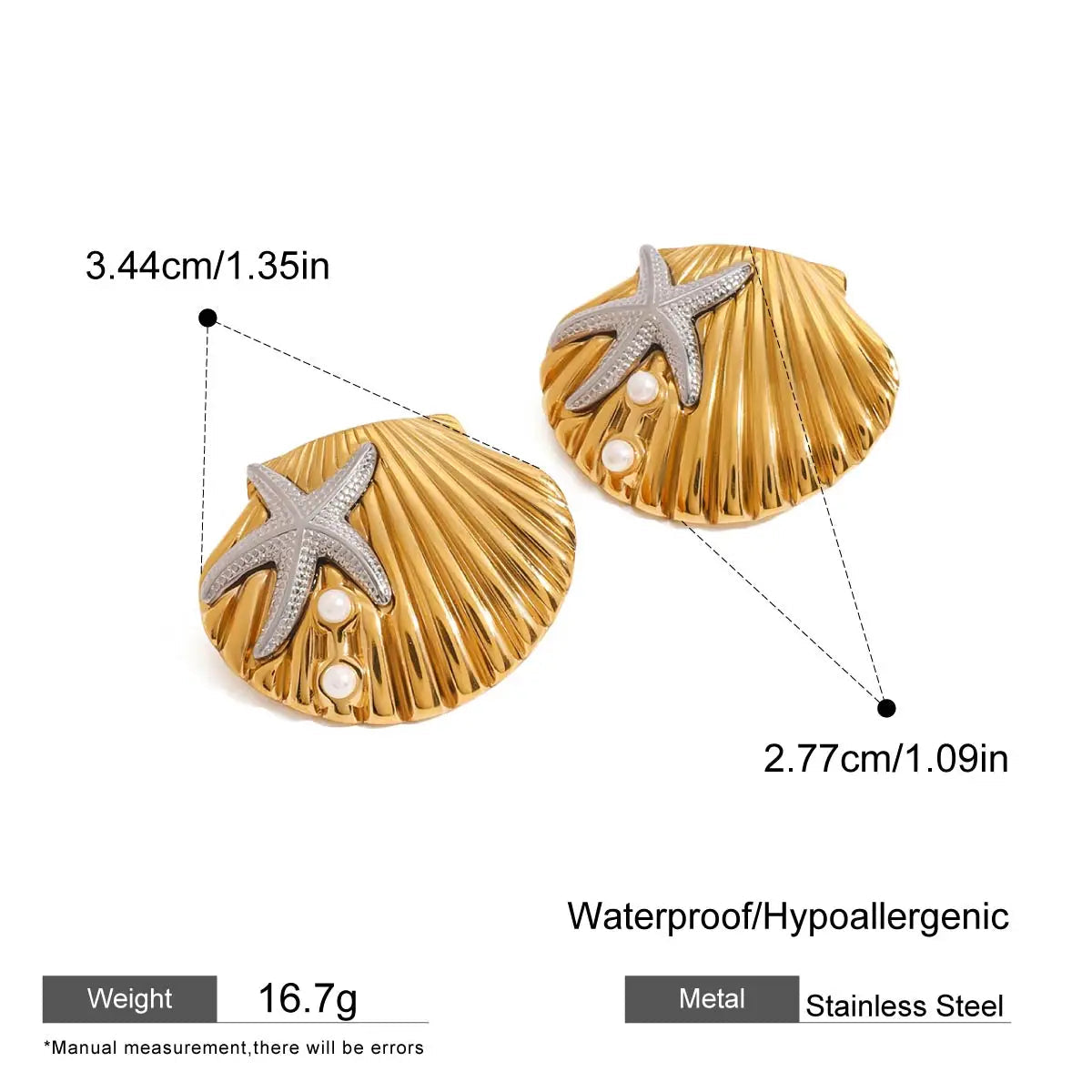 ステンレス304 低ニッケル 水に濡れても錆びにくい 18Kゴールドメッキ ピアス シェル 貝殻 【YJ03066】