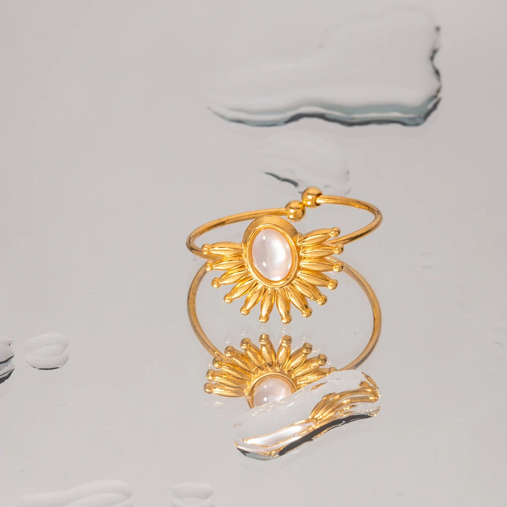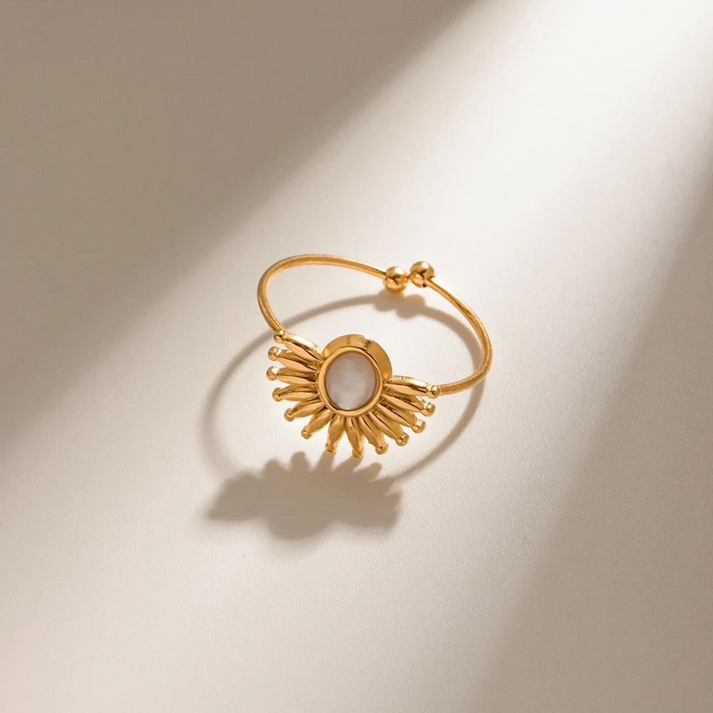 ステンレス304 低ニッケル 水に濡れても錆びにくい 18Kゴールドメッキ リング シェル 【YJ03398】