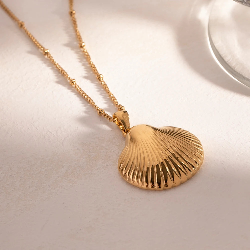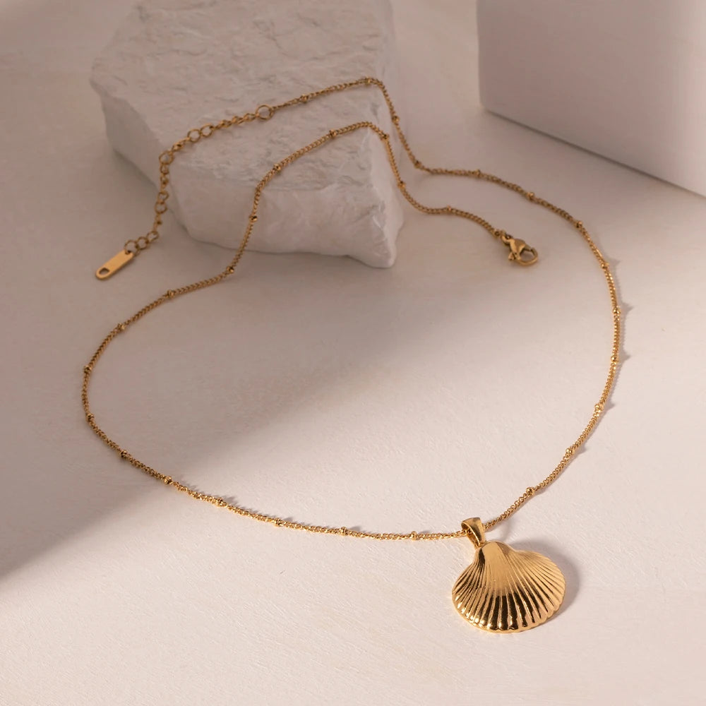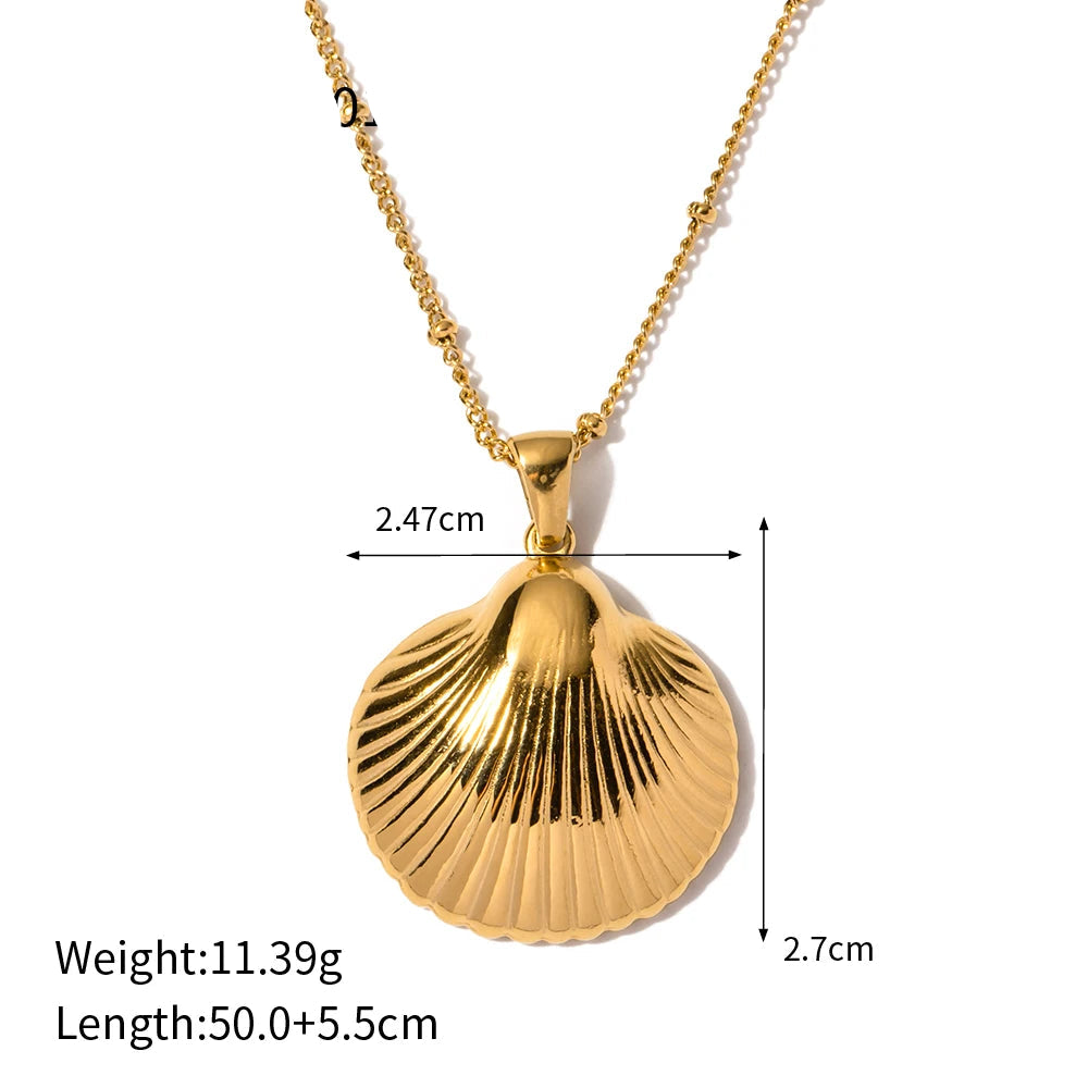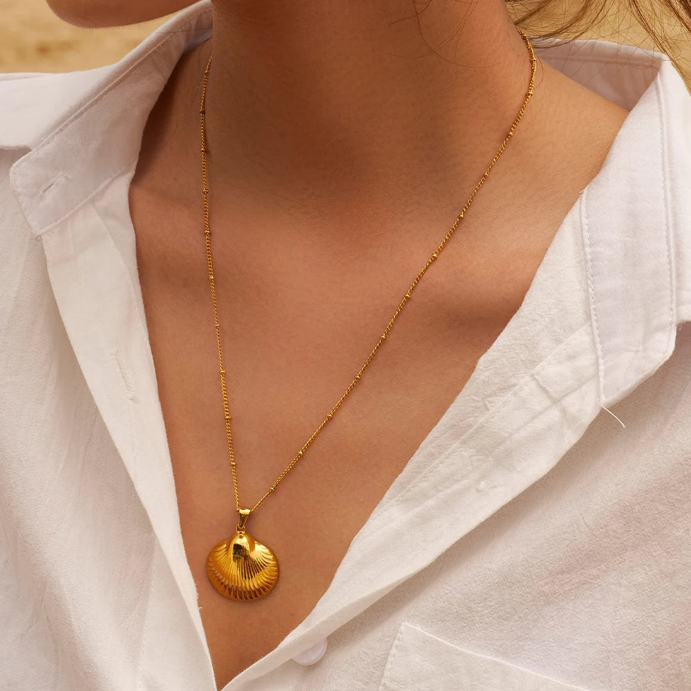ステンレス304 低ニッケル 水に濡れても錆びにくい 18Kゴールドメッキ ネックレス シェル 貝殻 【YJ03531】