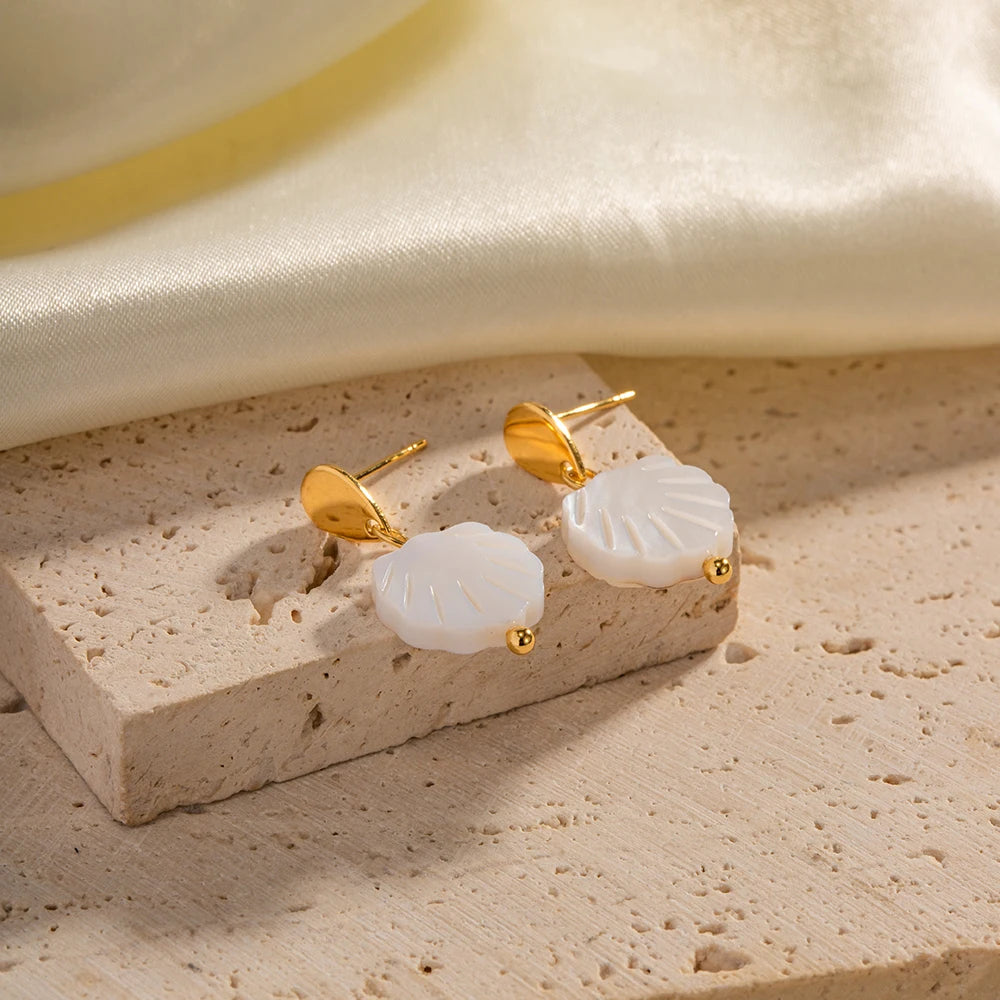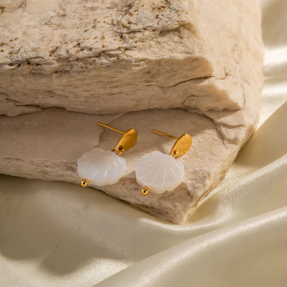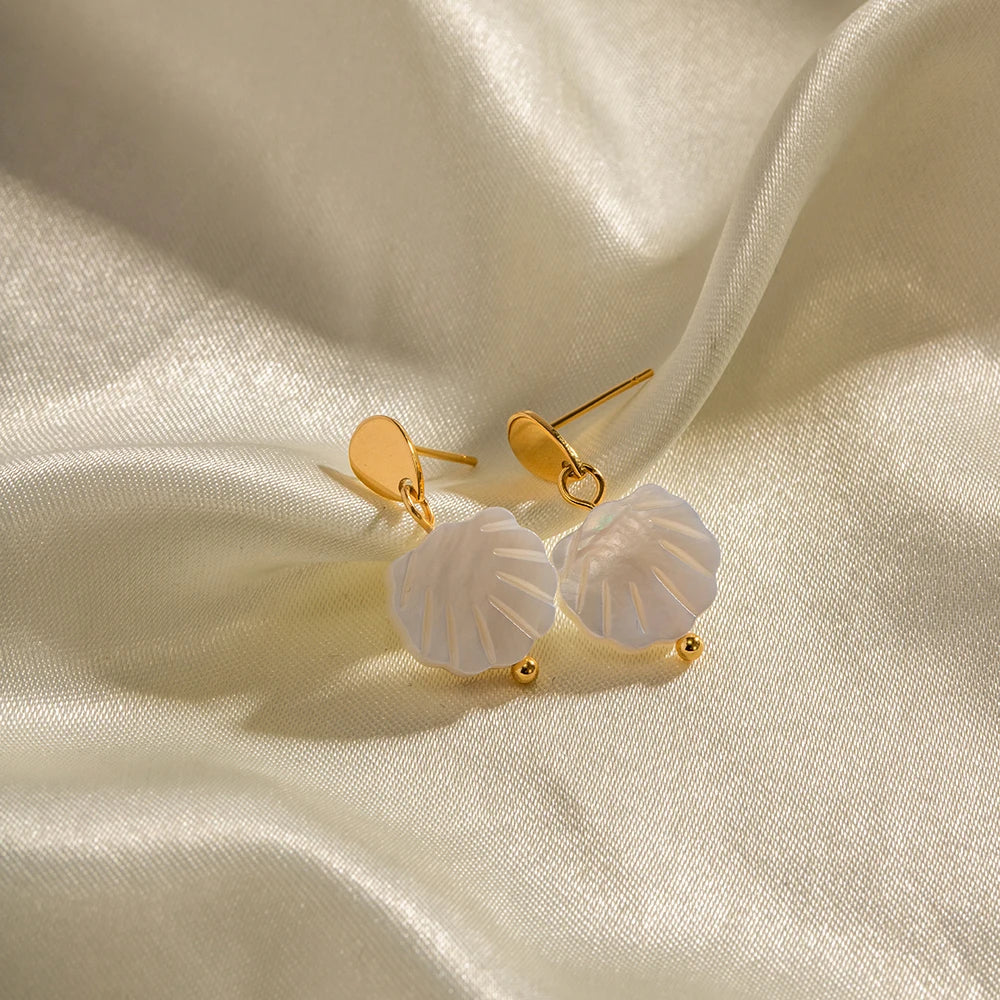 ステンレス304 低ニッケル 水に濡れても錆びにくい 18Kゴールドメッキ ピアス シェル 貝殻 【YJ03637】