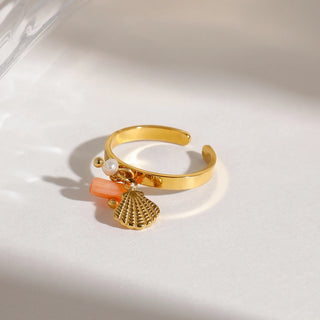 ステンレス304 低ニッケル 水に濡れても錆びにくい 18Kゴールドメッキ リング シェル 貝殻 【YJ02967】