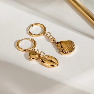 ステンレス304 低ニッケル 水に濡れても錆びにくい 18Kゴールドメッキ ピアス シェル 貝殻 ハート 写真入れ ロケットペンダント【YJ03135】