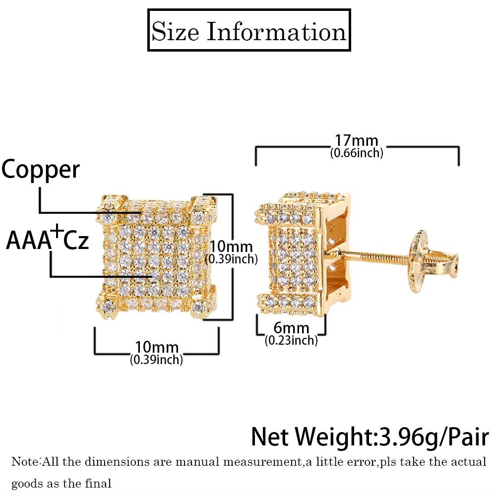 高品質真鍮 A3ランクジルコニア 18Kゴールドメッキ ピアス スクエア アイスドアウト ヒップホップ【NJ00064】