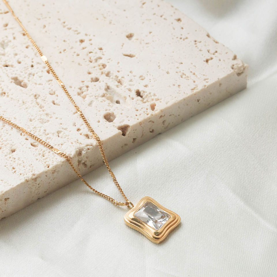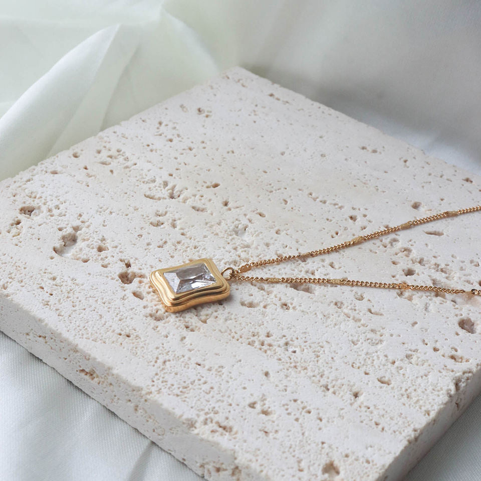 316Lサージカルステンレス ネックレス ジルコニア スクエア【NY01130】