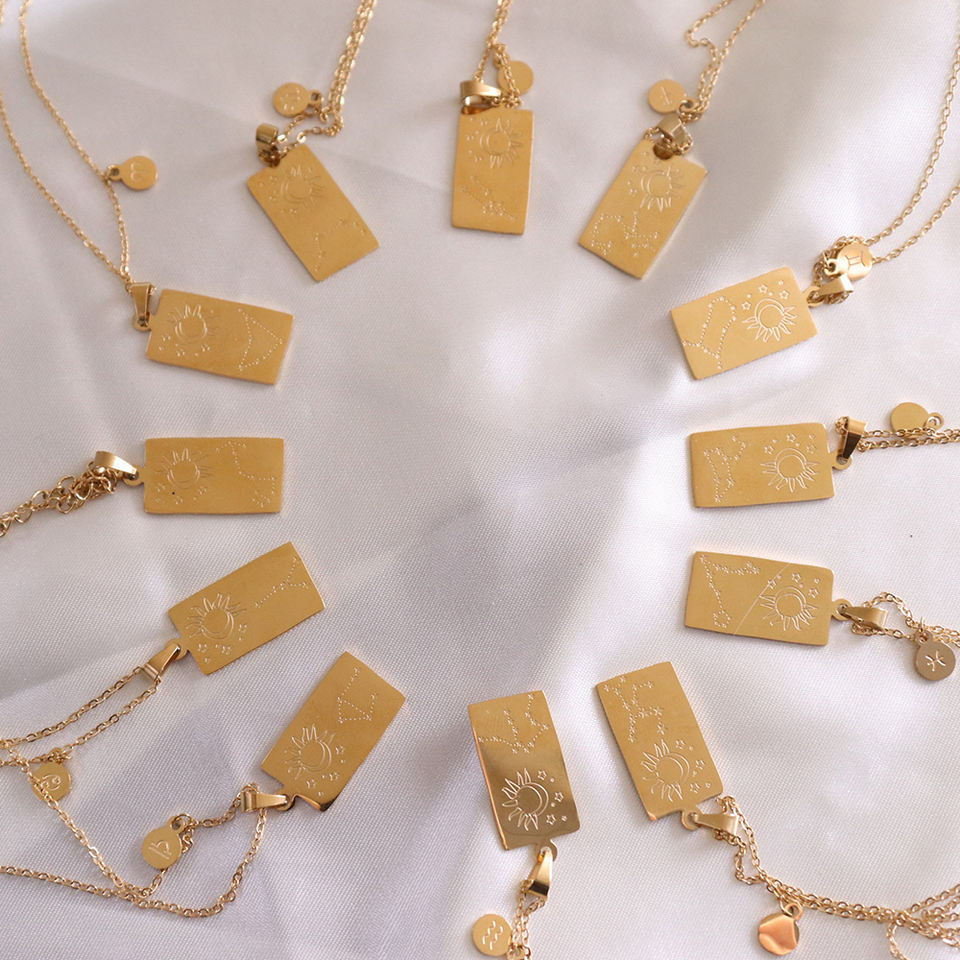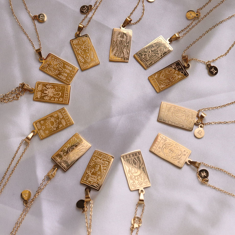 316Lサージカルステンレス ネックレス 12星座 スクエア 【NY01132】