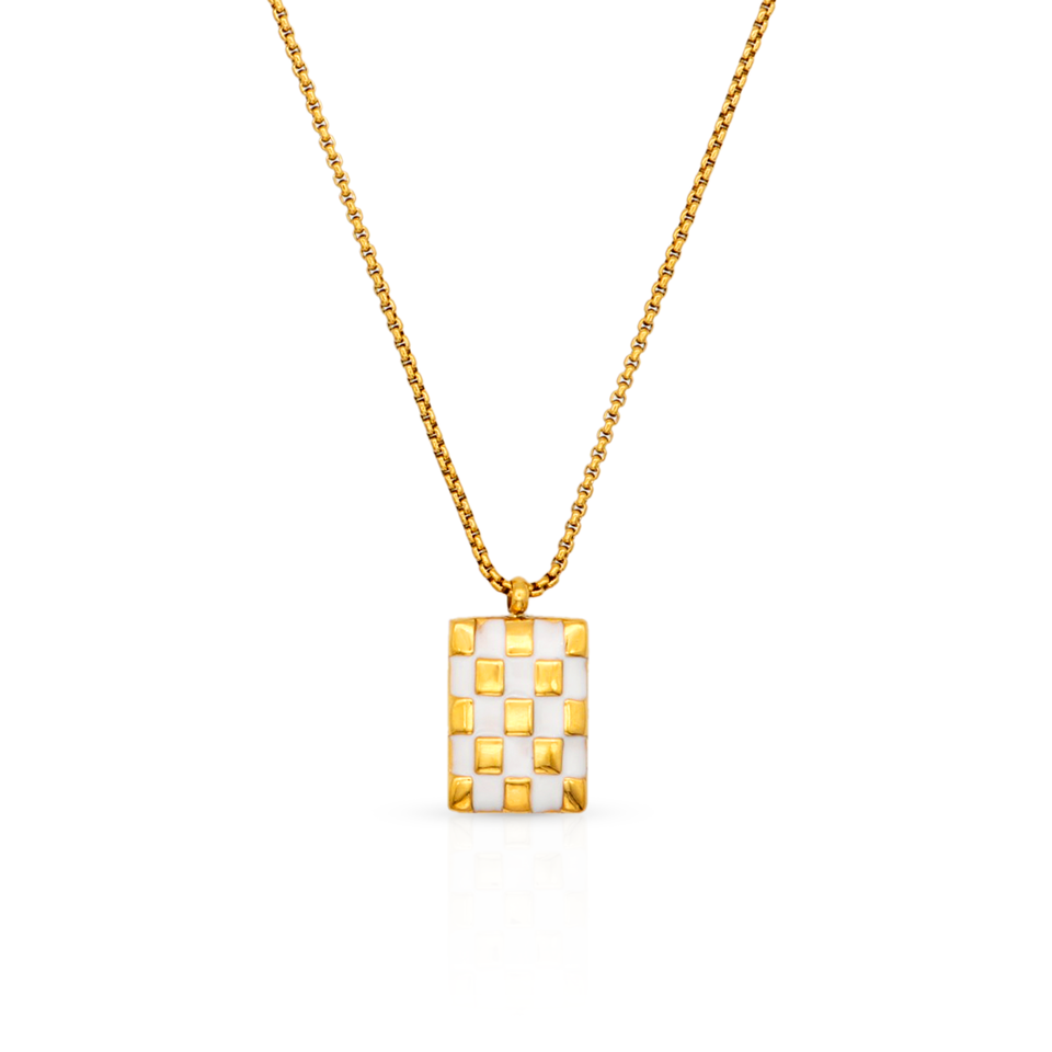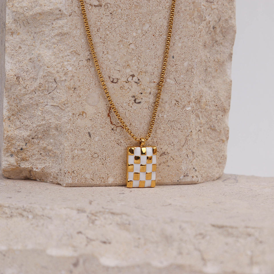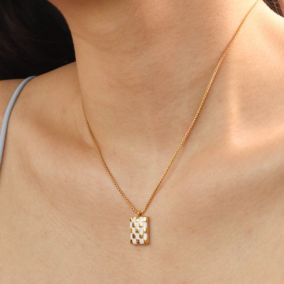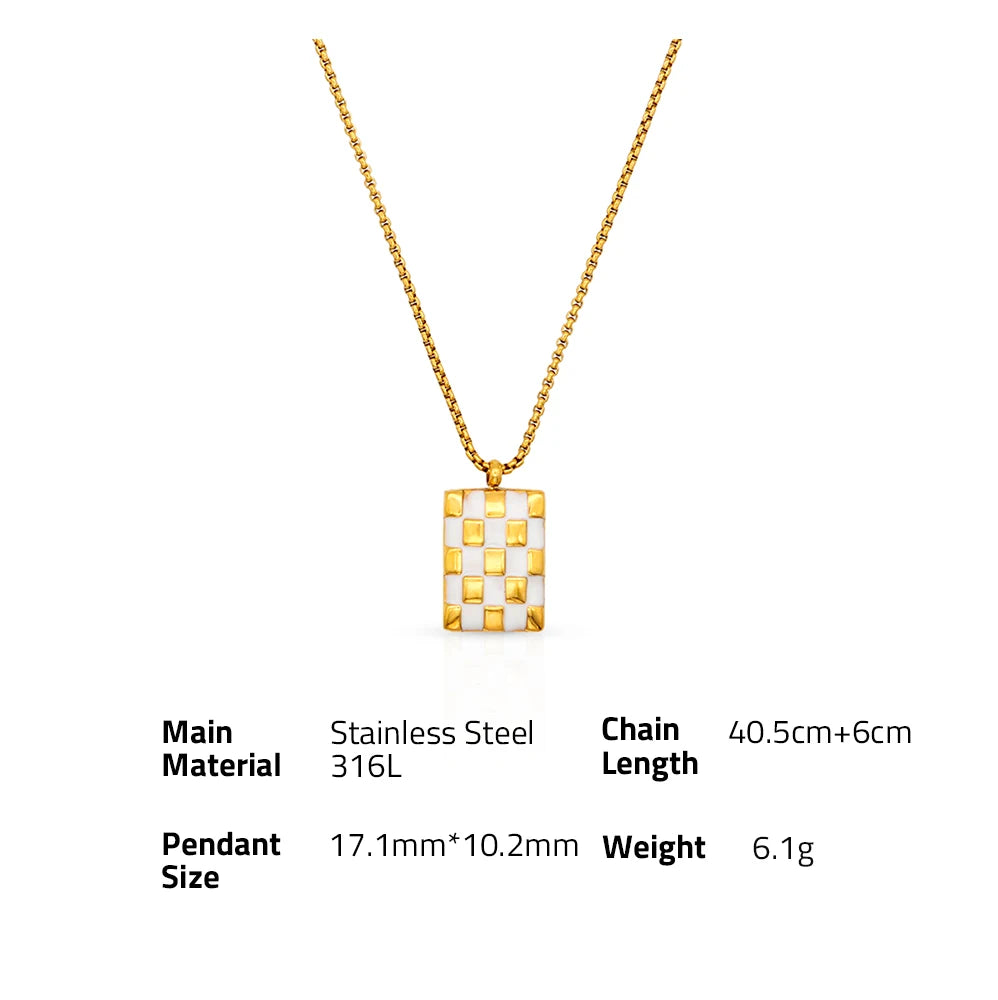 316Lサージカルステンレス 18Kゴールドメッキ ネックレス チェーン エナメル スクエア【NY01319】