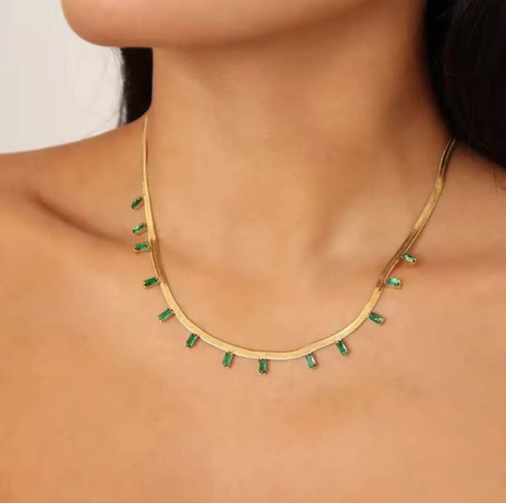316Lサージカルステンレス ネックレス チェーン スクエア ジルコニア【NY01625】