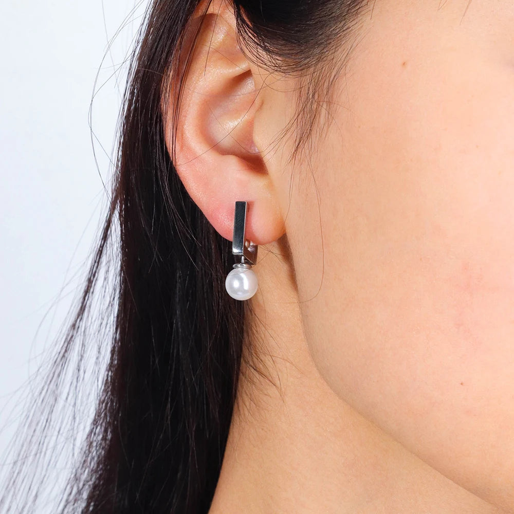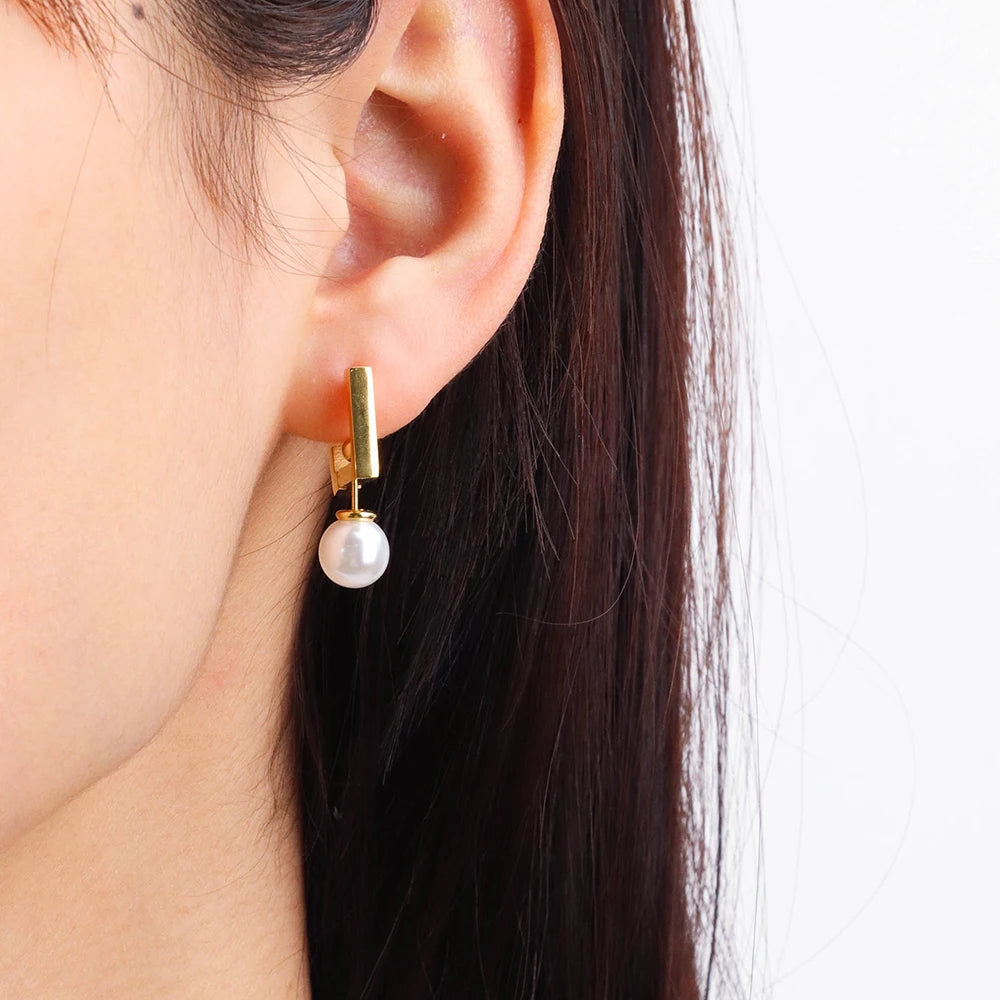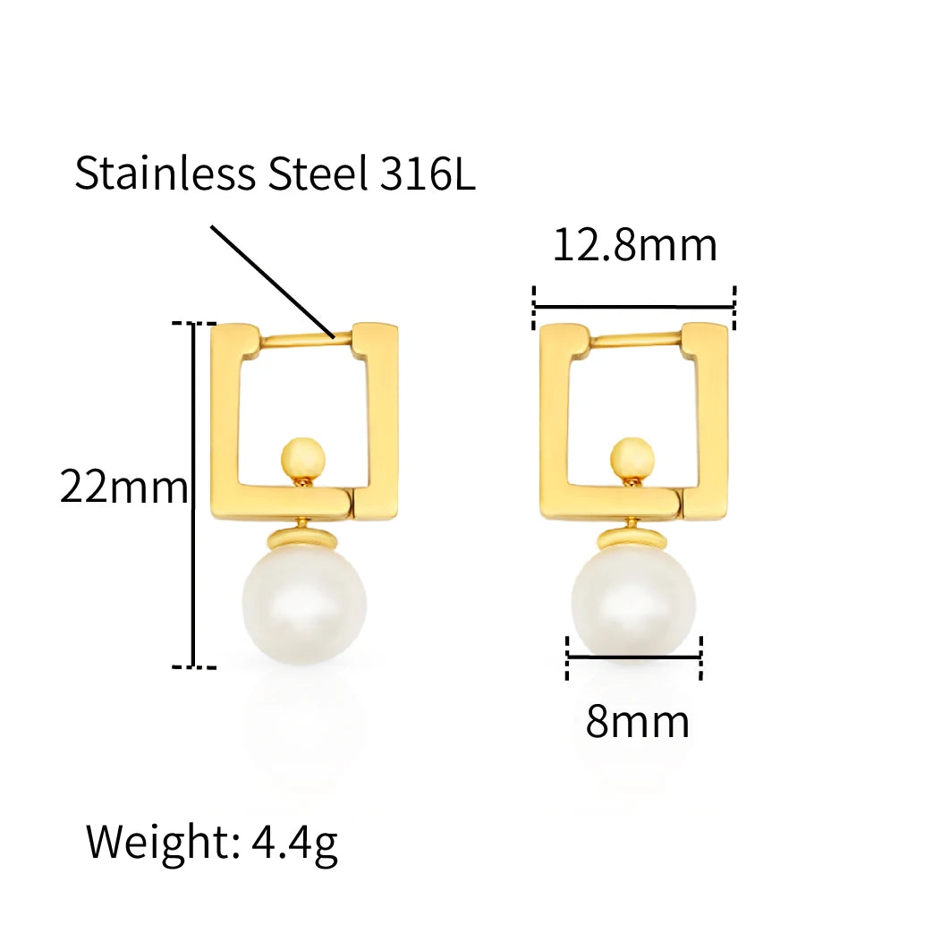 316Lサージカルステンレス 3way ピアス フープ スクエア パール【NY01657】
