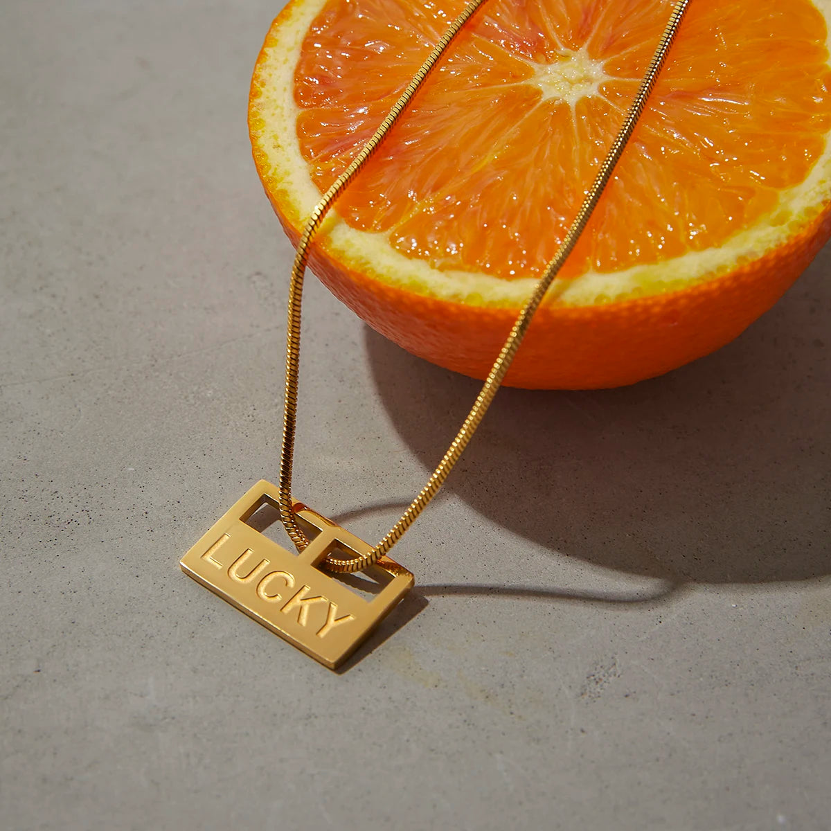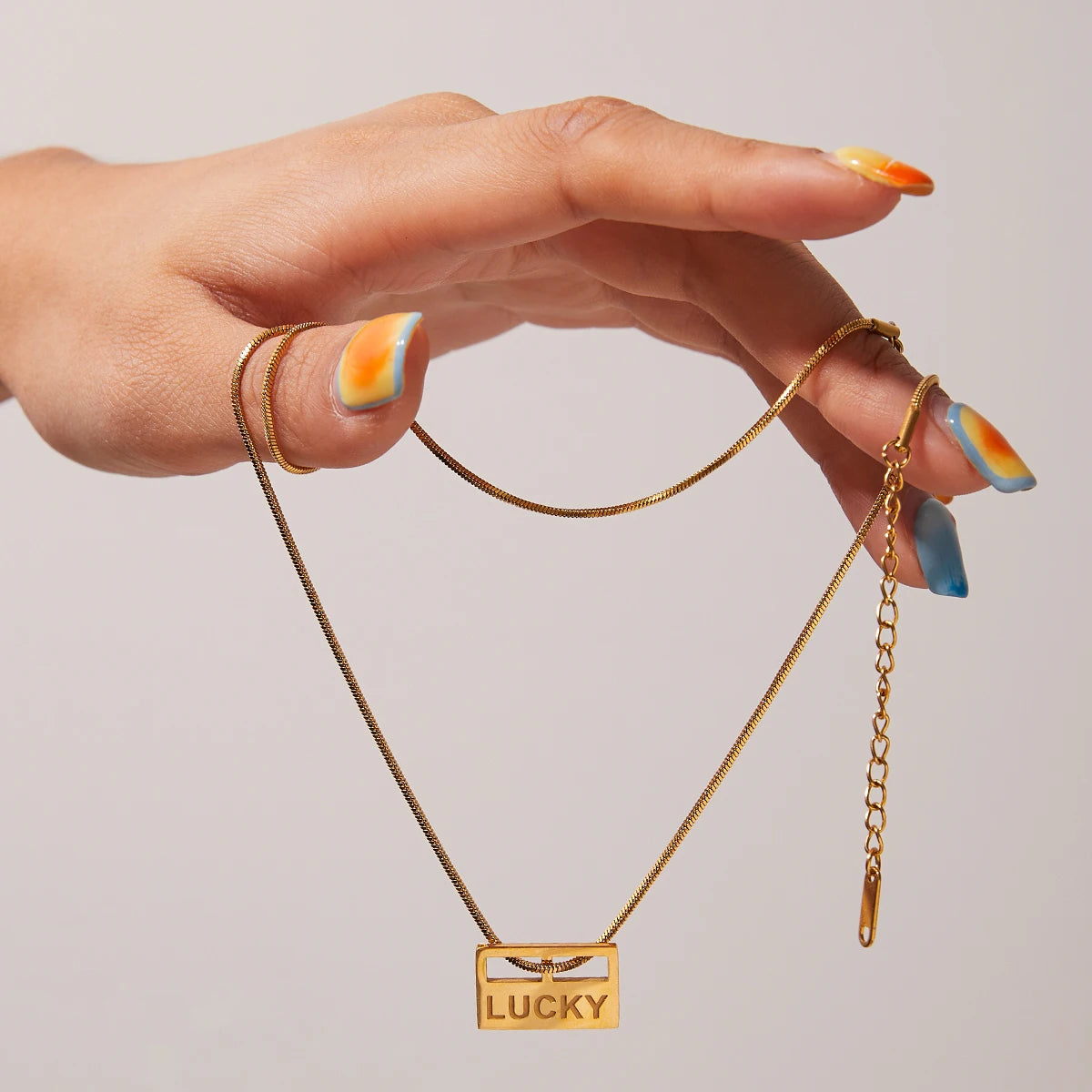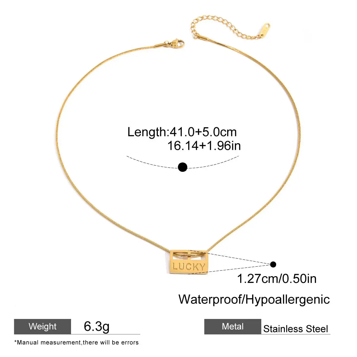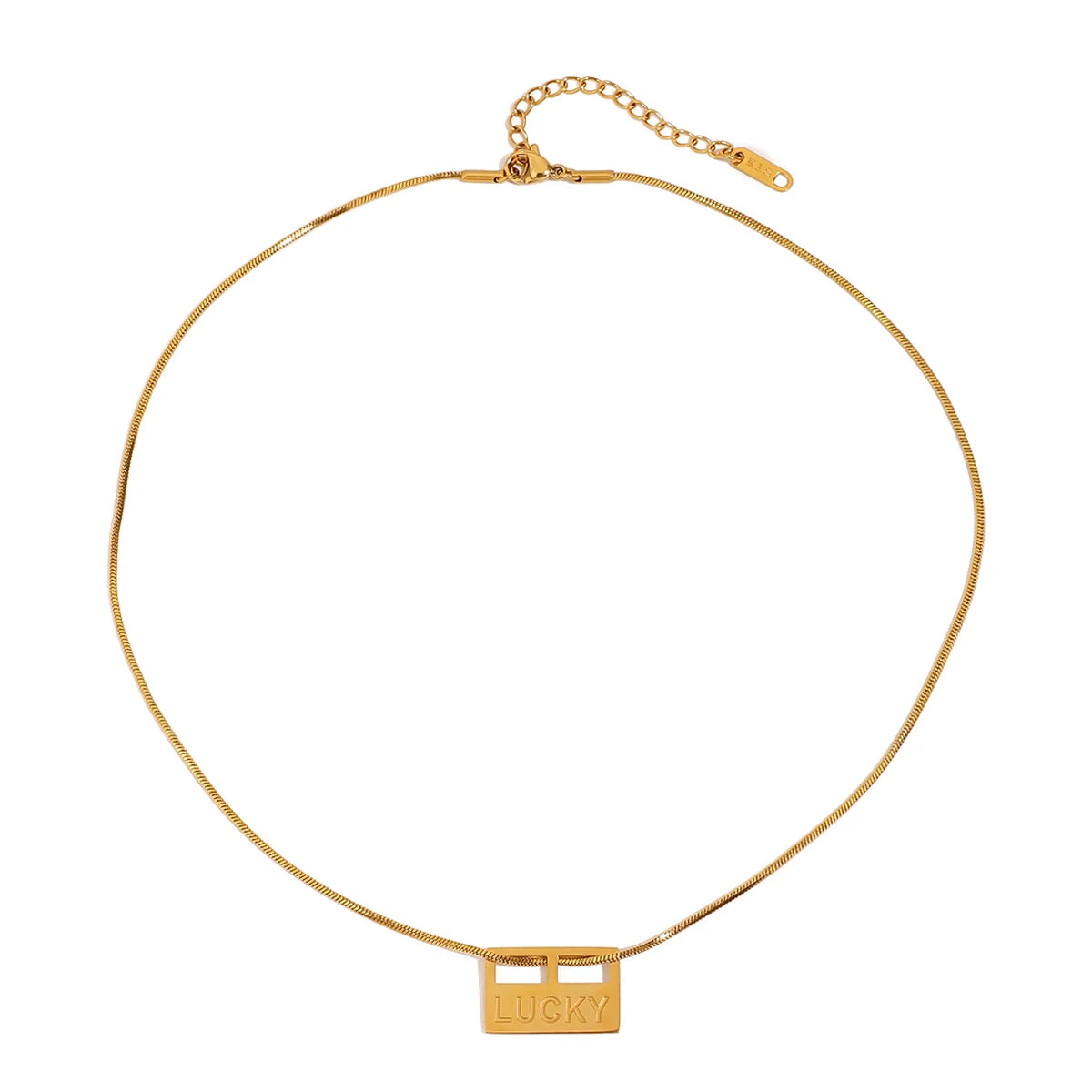 ステンレス304 ニッケルフリー 水に濡れても錆びにくい 18Kゴールドメッキ チャーム スクエア プレート ネックレス LUCKY 【YJ00926】